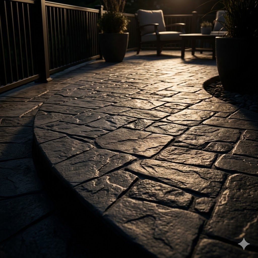 Cost Efficiency: Choosing stamped concrete over natural flagstone typically saves a homeowner between 30% and 50% on total project costs.